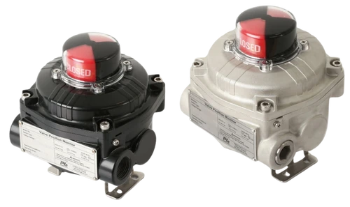 Precision Flameproof Valve Position Monitor for hazardous areas, rated IP 66 & 67 with a highly visible indicator, multiple switch options, and an integrated solenoid valve suitable for harsh working environments, with a optional stainless steel housing available